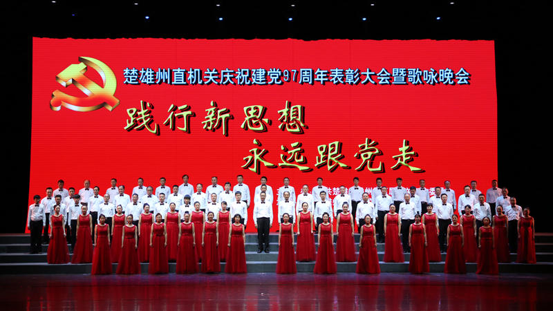 为隆重庆祝建党97周年,继承和发扬党的优良传统,激励机关广大党员干部牢记党的宗旨、坚定理想信念,强化党员意识、激发工作热情,按照州直机关工委统一要求,州发改委主要领导亲自带队,组成80人的参赛队伍,以《走向复兴》为参赛歌曲,邀请州民族艺术剧院老师指导,利用晚上和周末的休息时间,经过紧张排练,于6月26日参加了州直25支参赛队伍的比赛,荣获二等奖。